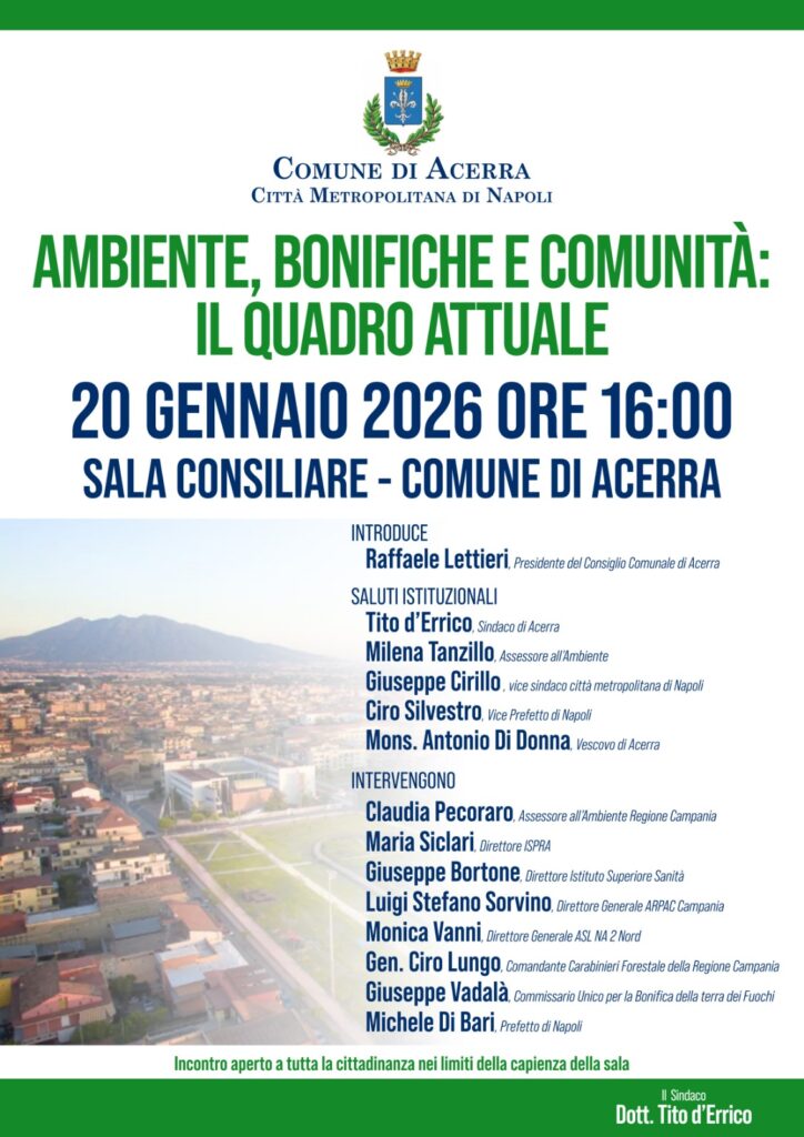 Un tema particolarmente sentito nel territorio di Acerra, i cui abitanti chiedono risposte: sul funzionamento dell’impianto come sullo stato delle bonifiche, sull’inquinamento atmosferico come sulla repressione dei reati ambientali. Non a caso il parterre dei relatori è stato di particolare rilievo, tra gli altri sono intervenuti: il vescovo di Acerra, Antonio Di Donna; il prefetto di Napoli Michele Di Bari, il commissario di Governo per la Terra dei Fuochi, Giuseppe Vadalà; il viceprefetto delegato al contrasto ai roghi, Ciro Silvestro; la direttrice generale dell’Asl Napoli 2, Monica Vanni; l’assessora regionale all’Ambiente, Claudia Pecoraro; il direttore generale dell’Arpa Campania, Stefano Sorvino.