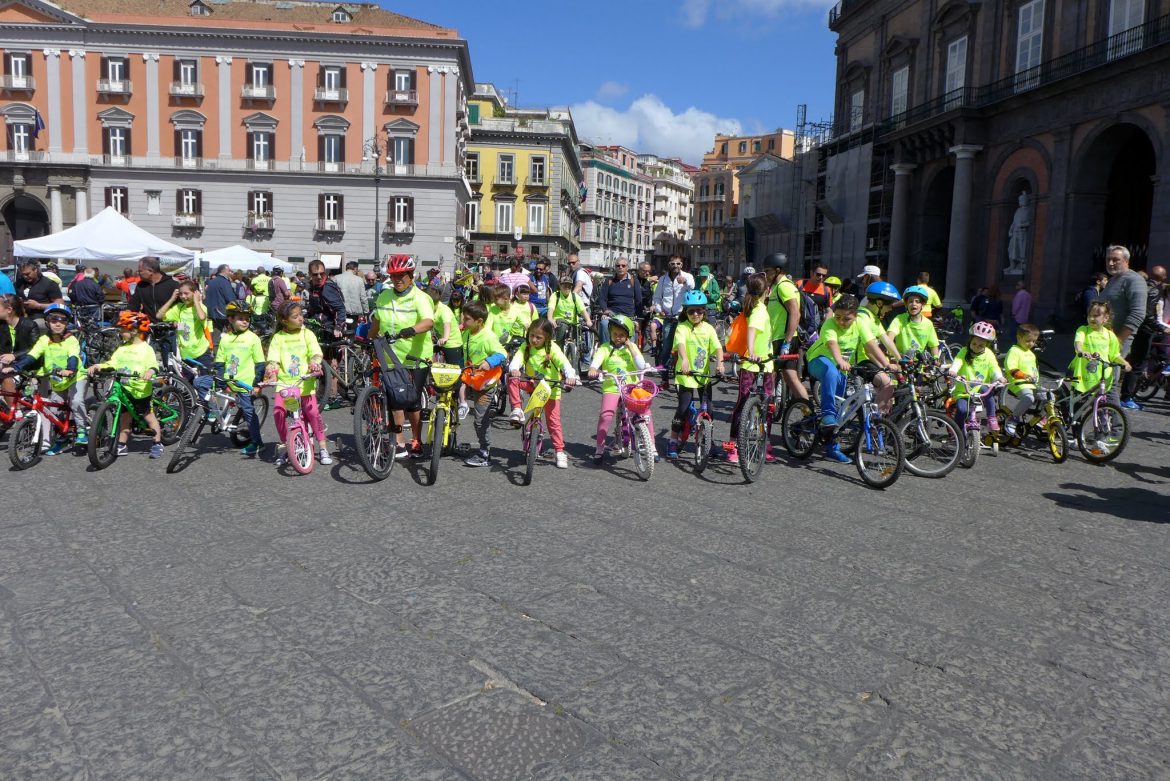 Accanto alla sezione Fiab Cicloverdi Napoli c’è l’ABC (Acqua Bene Comune Napoli) con la distribuzione delle borracce. L’evento ha anche il patrocinio della Società Italiana di Pediatria, che spinge per l’utilizzo della bici contro la sedentarietà.