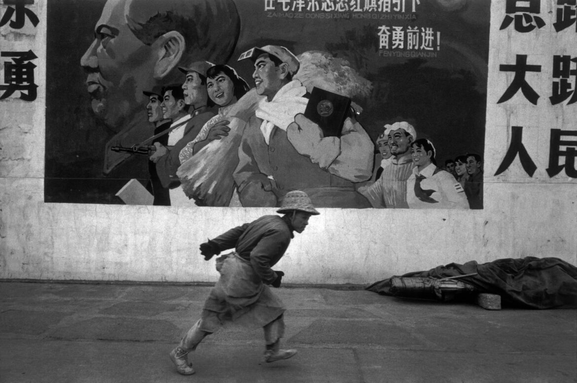 “In the train that took me from the Hong Kong border to Canton at the end of 1956, in other words from one world to another, my first Chinese photo was of this woman dressed in black, a peasant according to her luggage, whereas I thought she was a city girl because of her natural elegance. This image was immediately superimposed in my visual memory on other abandonments, all dignity lost, so often before my eyes in Asia. Perhaps that’s why, like other visitors, I was impressed by the dignity Mao seemed to have restored to the Chinese.” Marc Riboud. ©Marc Riboud / Fonds Marc Riboud au MNAAG / Magnum Photos