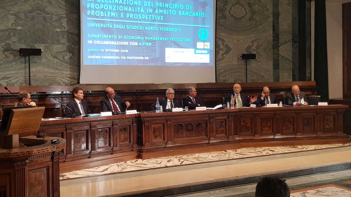 Ieri, nella stupenda sede del Centro Congressi della Federico II sul lungomare, si è tenuto il seminario dal titolo “La declinazione del principio di proporzionalità in ambito bancario: problemi e prospettive”, a cura del Dipartimento federiciano di economia, management e istituzioni, in collaborazione con l’AIFIRM che aggrega le professionalità del mondo finanziario, bancario e assicurativo.