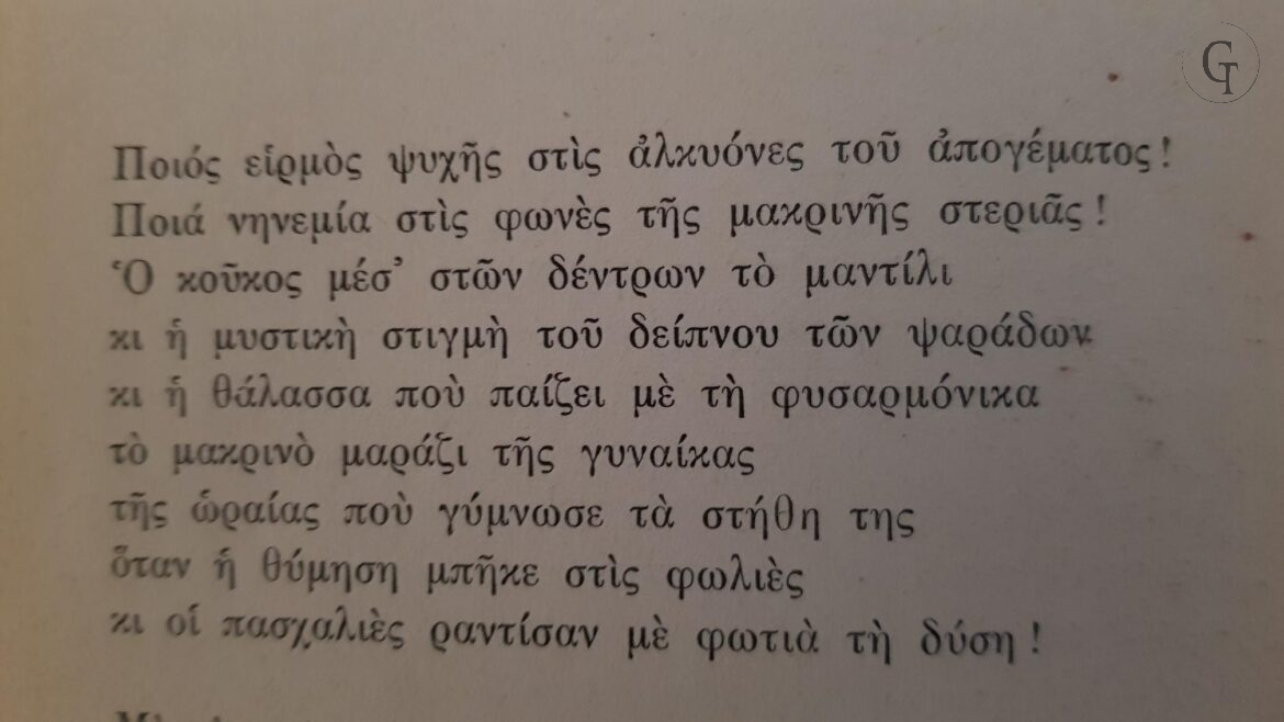 Traduzione di Vincenzo Rotolo, su “Quaderni di poesia neogreca”, Palermo 1968.