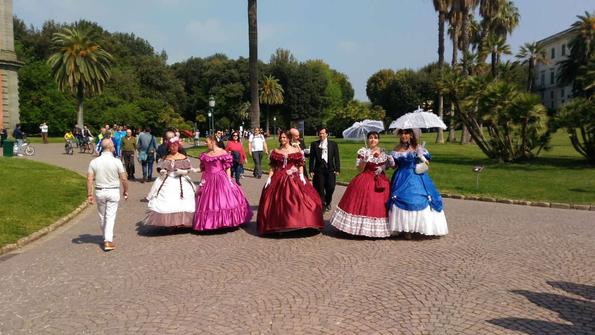 Non sono mancati i balli e le coreografie ottocenteschi organizzati dall’Associazione Società di Danza della quale abbiamo avuto l’opportunità di conoscere la Sig.ra Leontina Alvano, maestra di danza nonché responsabile dei costumi perfettamente in stile filologico ottocentesco. Questa è un’associazione che si occupa di studiare le danze dell’800 tratte dagli antichi manuali provenienti da tutte le Biblioteche d’Europa, ed ha sede in ogni città d’Italia e in molte città europee e quest’oggi erano presenti il circolo di Napoli e Caserta più due da Roma.