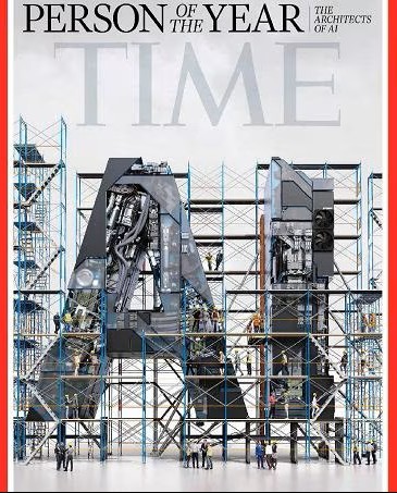 Gli “architetti dell’Intelligenza artificiale” sono stati scelti dalla rivista statunitense Time come persona dell’anno per il 2025. Nella copertina che vedete in alto sono raffigurati su una trave di acciaio, come gli operai della celeberrima foto del 1932. Nella seconda copertina i cosiddetti architetti costruiscono l’AI.
