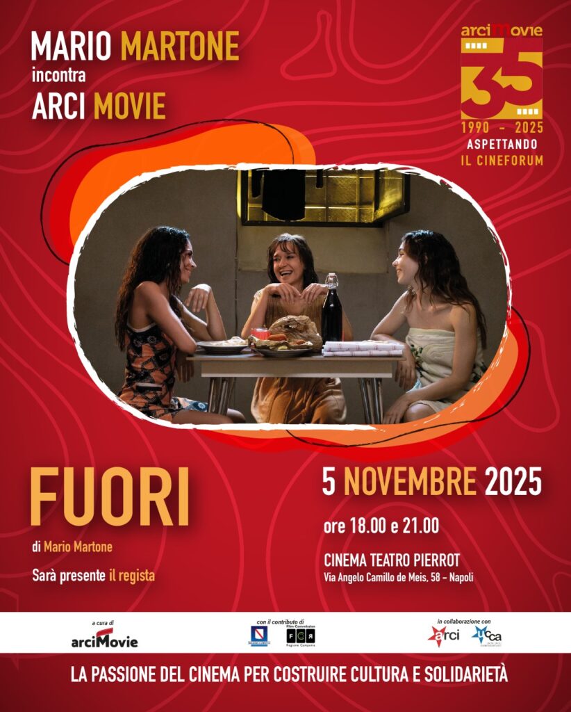 “Per i nostri 35 anni di attività siamo felici di ospitare un maestro del cinema come Mario Martone, che ha spesso frequentato la nostra sala di Ponticelli e le nostre rassegne, mostrando stima e interesse per la nostra associazione. Sono 35 anche gli anni del nostro Cineforum e della nostra attività sociale e culturale nell’ultima sala di Napoli Est sopravvissuta alla chiusura grazie a una mobilitazione che ha promosso Arci Movie nel lontano 1995”, così Roberto D’Avascio, presidente di Arci Movie