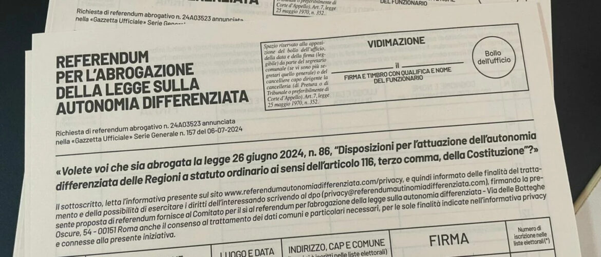 Non vado a firmare per il referendum per l’abrogazione della Legge Calderoli sull’autonomia differenziata. Non mi va di perdere tempo. Non che mi sfuggano le ragioni politiche e propagandistiche della raccolta delle firme per il referendum. Già il raggiungimento del quorum in calce al quesito avrà un impatto politico indiscutibile, ovvio. Né disconosco le nefandezze di questa pessima legge. Ma questo referendum non si farà. Cerco di spiegarmi.