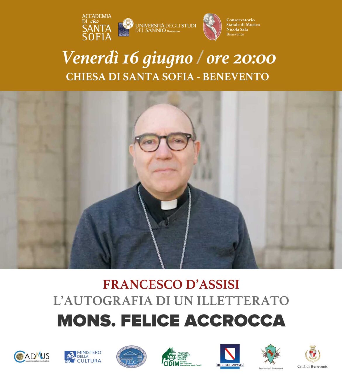 “L’autografia di un illetterato” è il titolo dell’incontro con Mons. Felice Accrocca su Francesco d’Assisi. Venerdì 16 giugno presso la Chiesa di Santa Sofia di Benevento. L’ appuntamento è compreso nella Stagione Artistica 2023 promossa da Accademia di Santa Sofia insieme a Università degli Studi del Sannio e Conservatorio di Benevento.