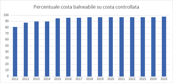 In Italia oltre 5.000 chilometri di litorale, pari al 95,7% della costa monitorata, rientrano nella classe di qualità eccellente; ne deriva che la stragrande maggioranza delle acque di balneazione costiere italiane raggiungono il livello più alto previsto dal sistema di classificazione europeo.
