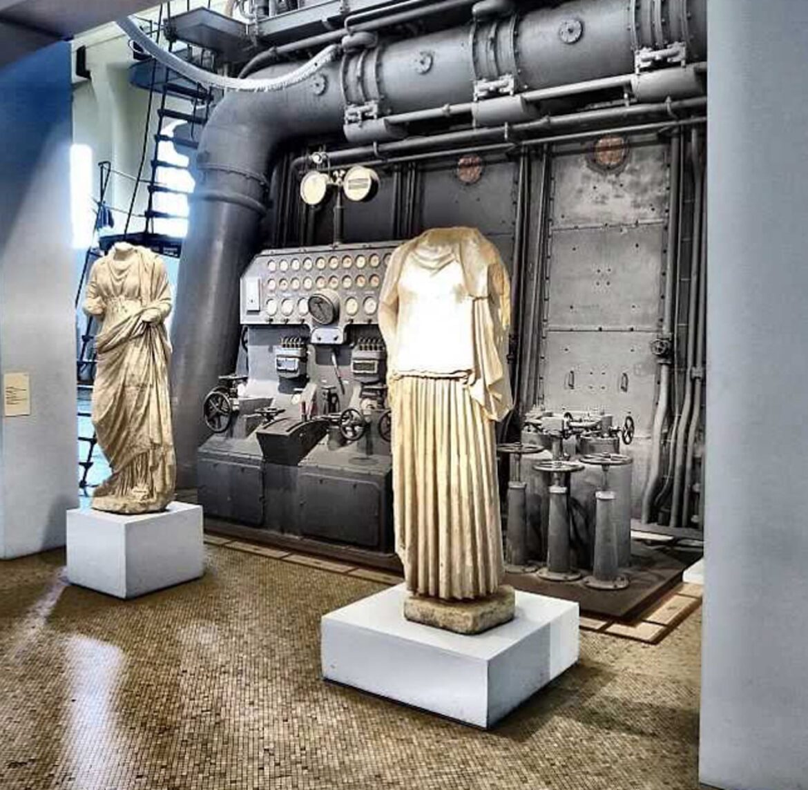 Ma poi prende forma l’idea di restaurare i macchinari e adeguare gli spazi alle esigenze museali in modo da lasciare lì definitivamente le statue, il che fa nascere un Museo nel quale si genera una straordinaria convivenza tra gli imponenti macchinari dell’originaria centrale elettrica e circa quattrocento statue e altre opere di epoca romana: “uno straordinario esempio di riconversione in sede museale di un edificio di archeologia industriale”.