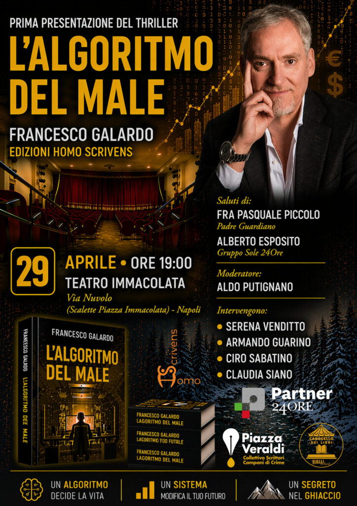 “L’algoritmo del male” di Francesco Galardo, presentazione mercoledì 29 aprile al Teatro Immacolata a Napoli.