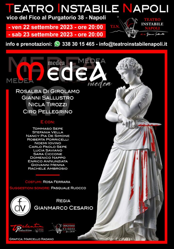 Venerdì 22 e sabato 23 settembre al teatro Instabile Napoli, per la rassegna In-stabilestate, va in scena Medea da Euripide e Seneca. Regia di Gianmarco Cesario.