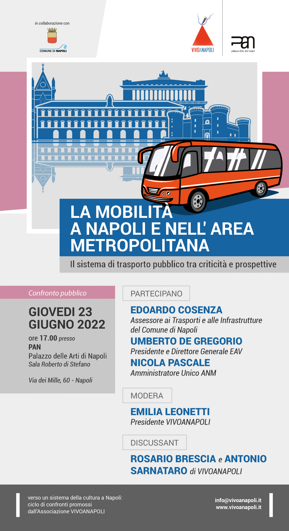 Vivoanapoli ha organizzato per giovedì 23 giugno alle 17.00, nella sala Roberto di Stefano del PAN, un confronto pubblico sulla mobilità a Napoli e nell’area metropolitana.