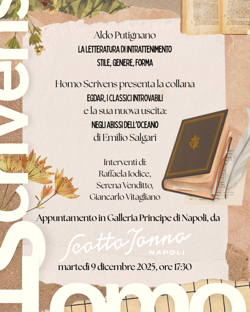 Martedì 9 dicembre, a Scotto Jonno nella Galleria Principe di Napoli, presentazione dell’uscita di Negli abissi dell’oceano – I racconti di Fantascienza nell’ambito dell’incontro-lezione sulla letteratura di intrattenimento con particolare attenzione a Emilio Salgari.