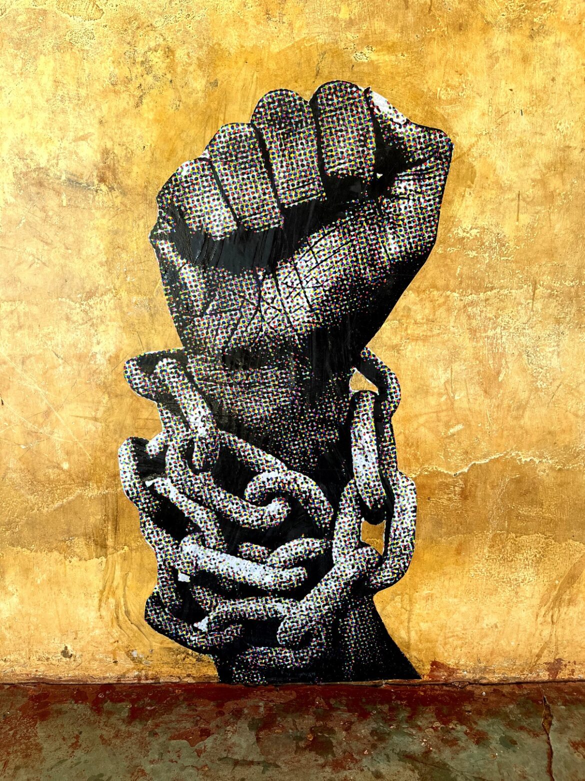 “Punch, il pugno, è un simbolo della forza, della resilienza e della speranza che risiedono in ognuno di noi, anche nelle circostanze più difficili. (…) Nell’opera, il pugno è rappresentato avvolto da catene, che simboleggiano le difficoltà a dare fondo alla speranza, specialmente per chi trascorre la propria vita in un carcere”.