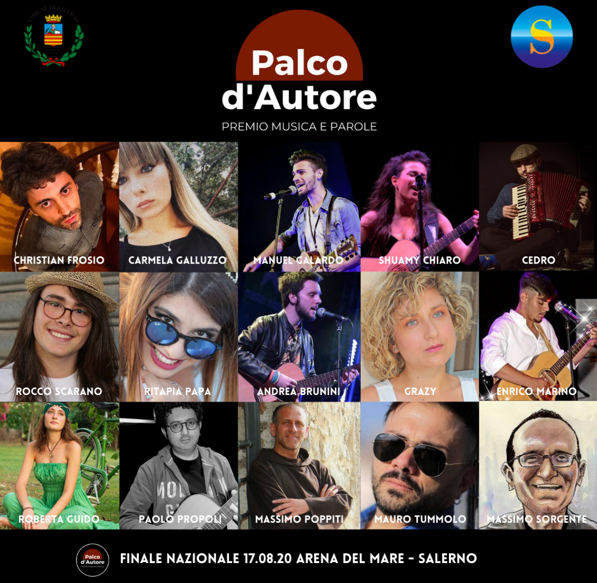 Il 17 Agosto, lunedì, ci sarà la finale della prima edizione di “Palco d’Autore”. All’Arena del Mare di Salerno i 15 finalisti del contest nazionale dedicato ad autori, cantautori ed interpreti, patrocinato dal Comune di Salerno, presenteranno al pubblico i loro brani.
