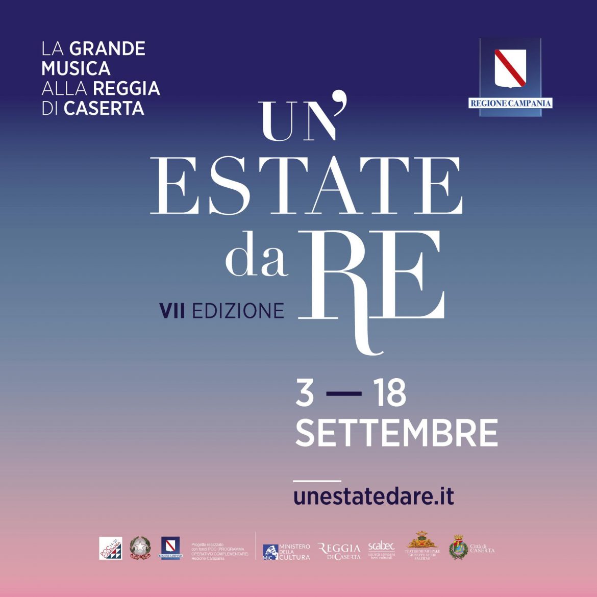 Alla Reggia di Caserta, dal 3 al 18 settembre, “Un’Estate da RE”. Rassegna musicale organizzata dalla Scabec – la società regionale di valorizzazione dei beni culturali – in collaborazione con il Ministero della Cultura, la Direzione della Reggia di Caserta, il Comune di Caserta e il Teatro Municipale “Giuseppe Verdi” di Salerno. Direzione artistica del Maestro Antonio Marzullo.